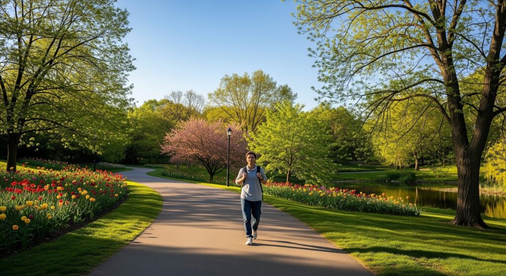 - Outdoor 10-minute walk (after lunch) for light exposure and movement.